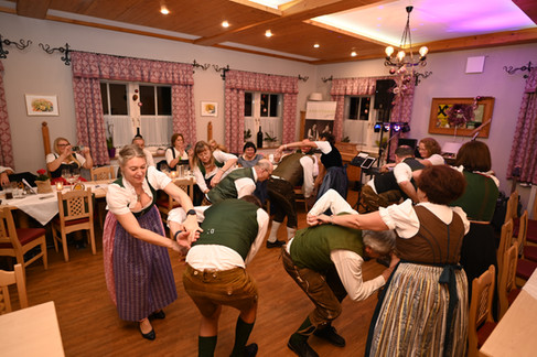 Im zweiten Auftrittsteil zeigte die Volkstanzgruppe den Kaukasus-Walzer sowie die flotte Schwedische Maskerade, gefolgt von einer eingeklatschten Zugabe. Beim anschließenden offenen Volkstanzen wurde der Tanzboden beinahe zu klein, doch mit viel Freude, Humor und Zusammenhalt meisterten alle die „Tanzherausforderungen“ sehr gut.